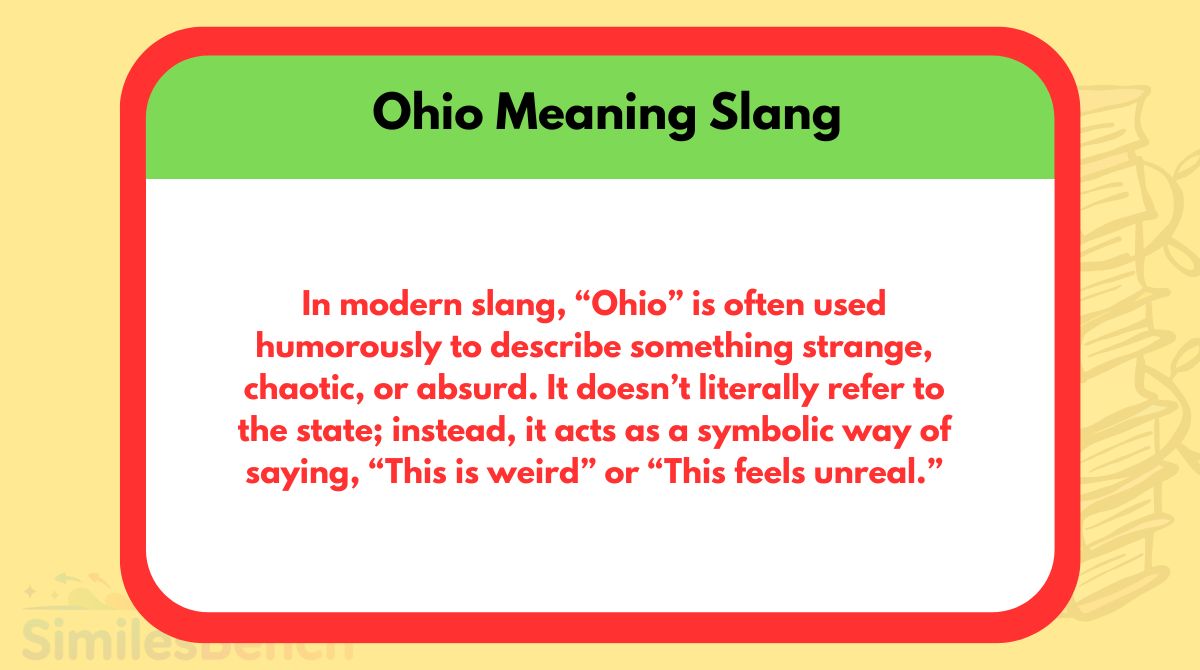The slang use of âOhioâ is a great example of how internet culture can transform ordinary words into humorous expressions. While it may seem confusing at first, its meaning becomes clear once you understand the context: itâs all about describing something strange, chaotic, or absurd in a playful way.